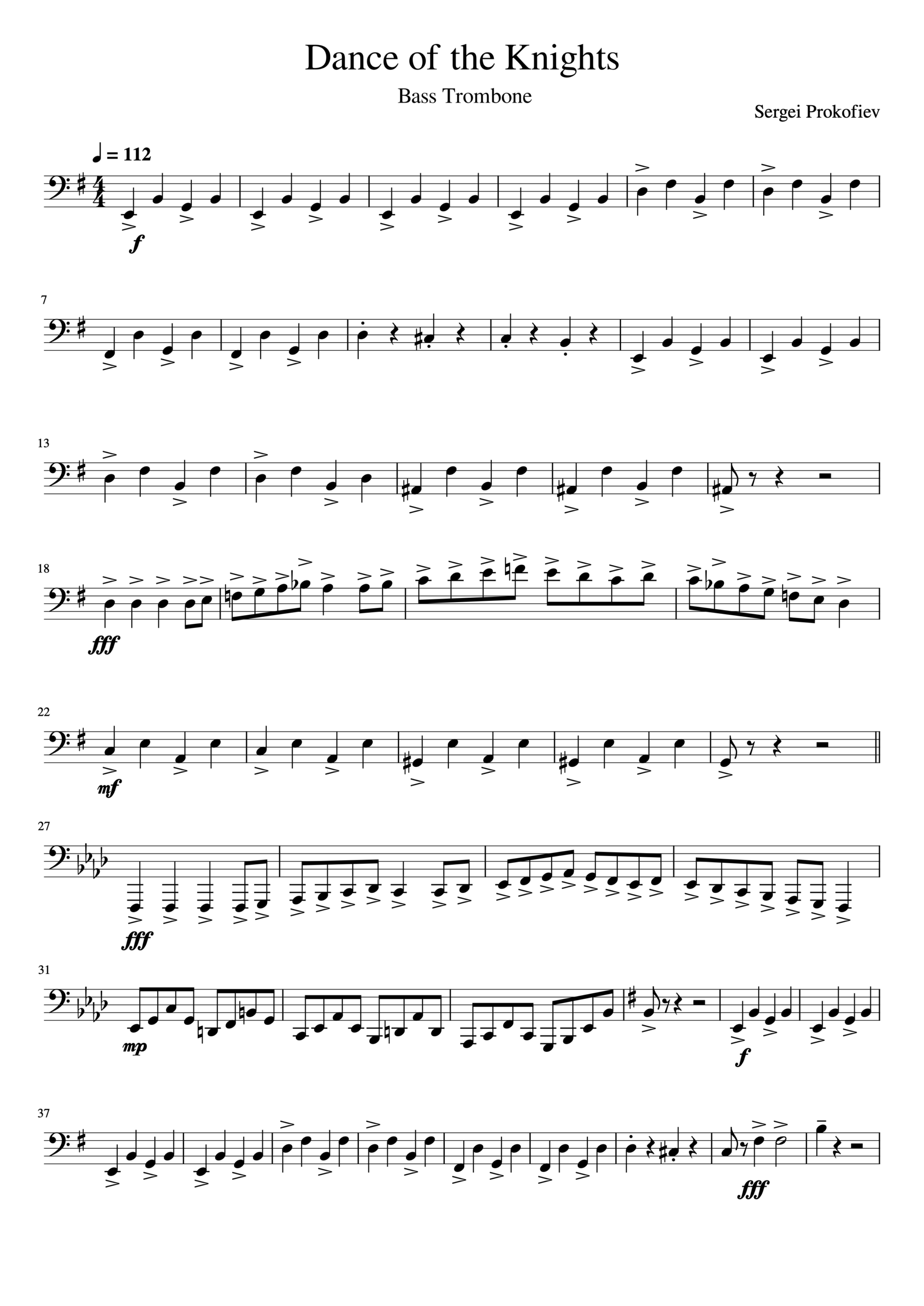 “Dance of the Knights Bass Trombone” is a thrilling (and kinda spooky) arrangement of Prokofiev’s iconic piece. This bad boy’s perfect for beginner players lookin’ to show off their chops. Here’s the lowdown: